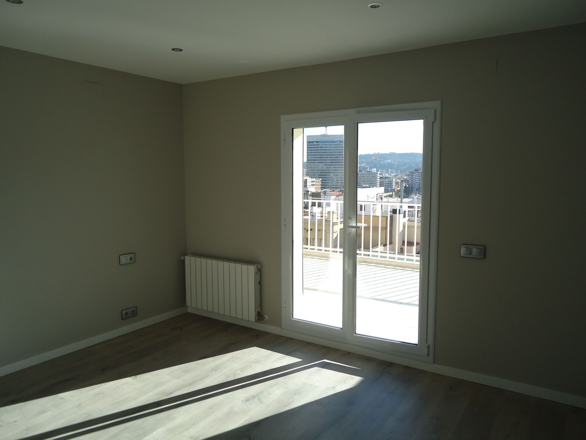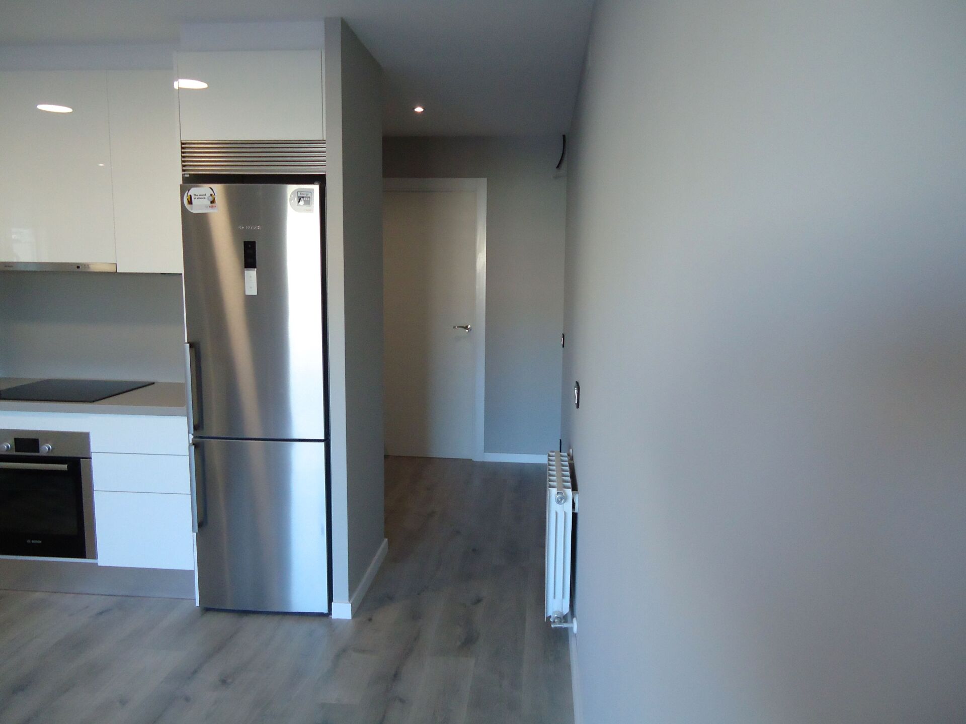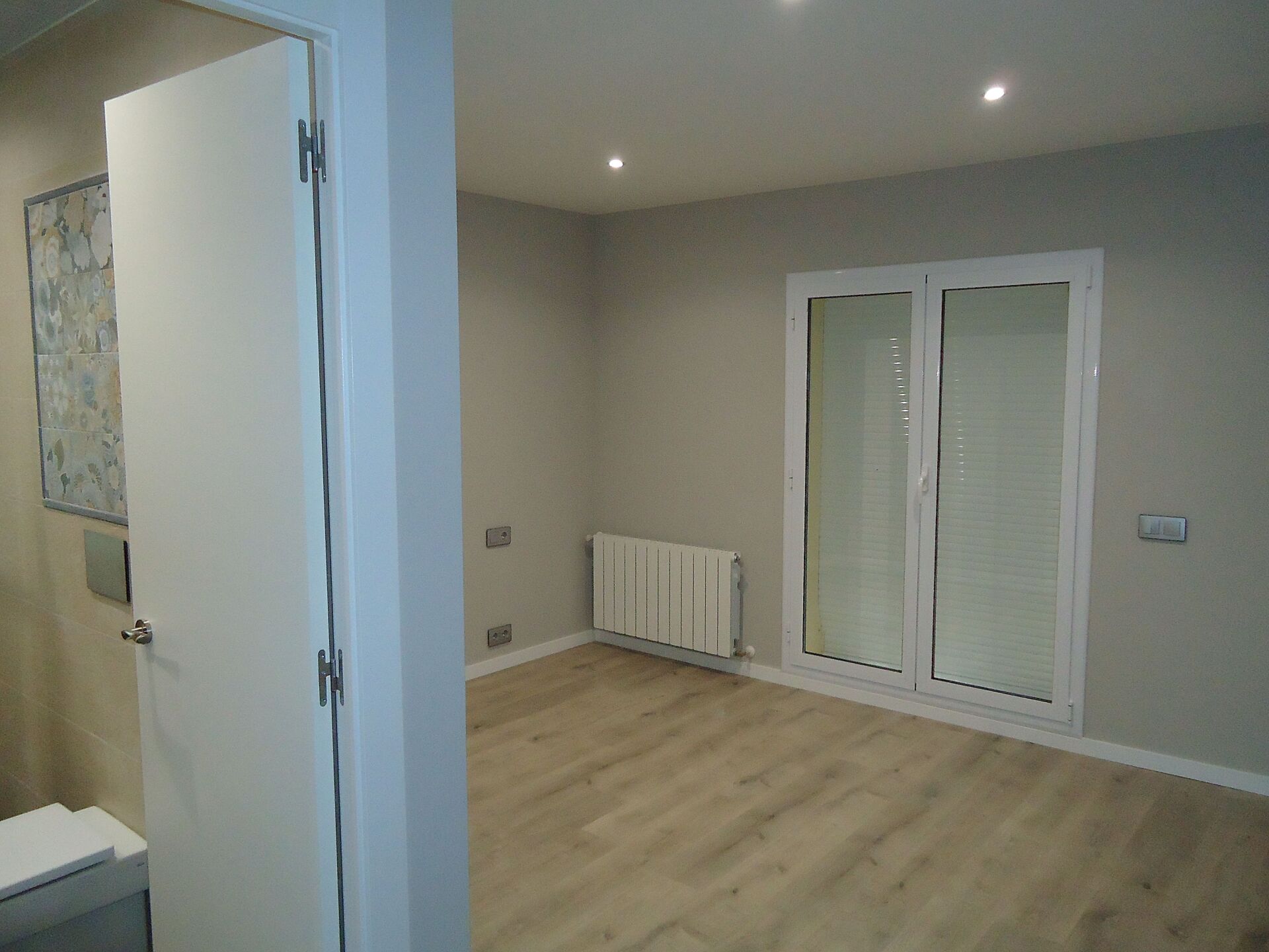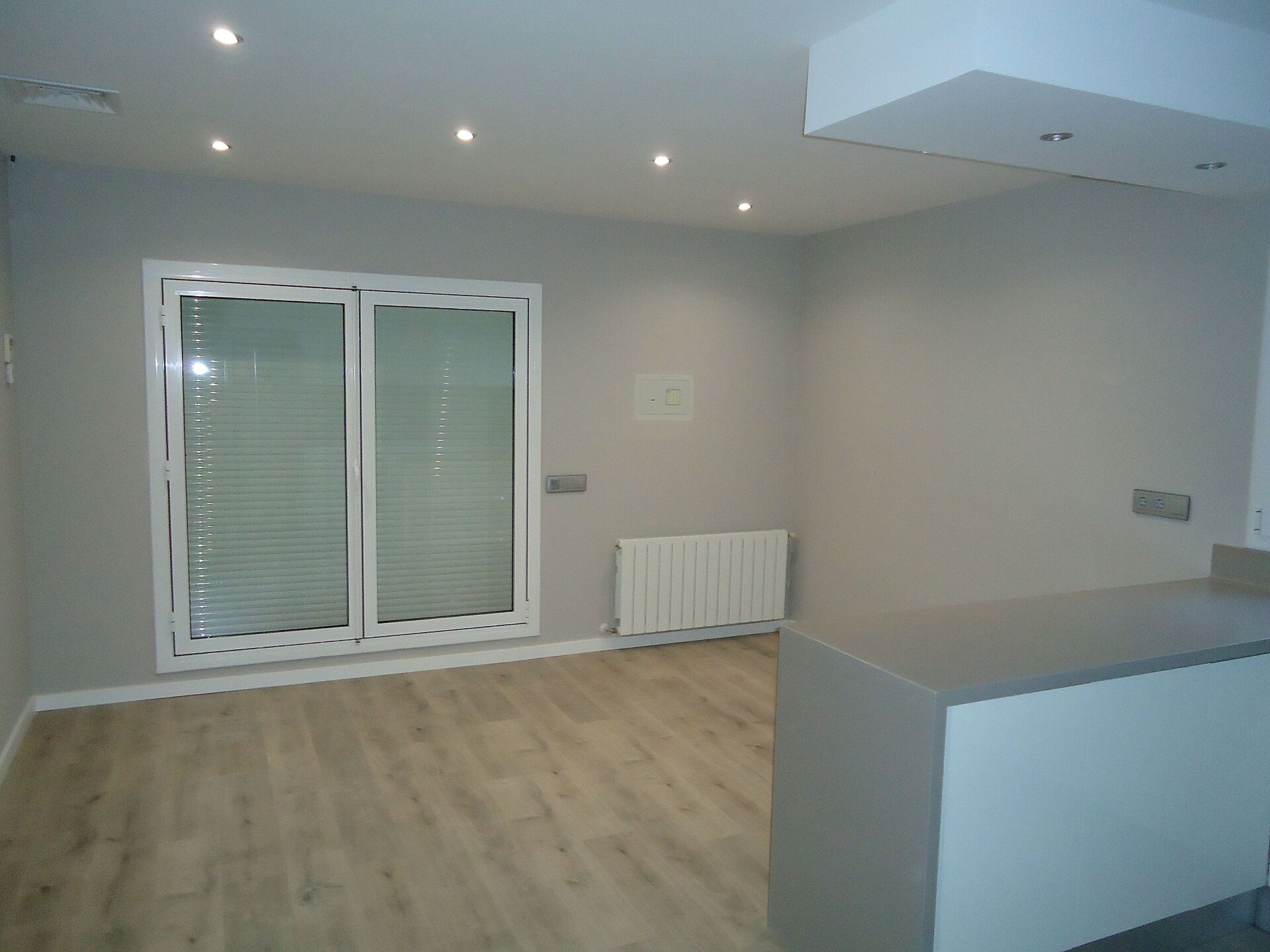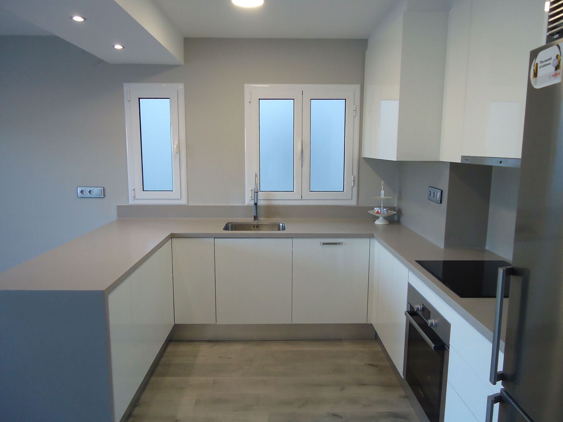 La cocina integrada ha generado gran espacio al salón, convirtiéndolo en un espacio diáfano y lleno de luz. En esta reforma integral la carpintería de madera y de aluminio ha sido totalmente renovada, así como las instalaciones de agua y electricidad.