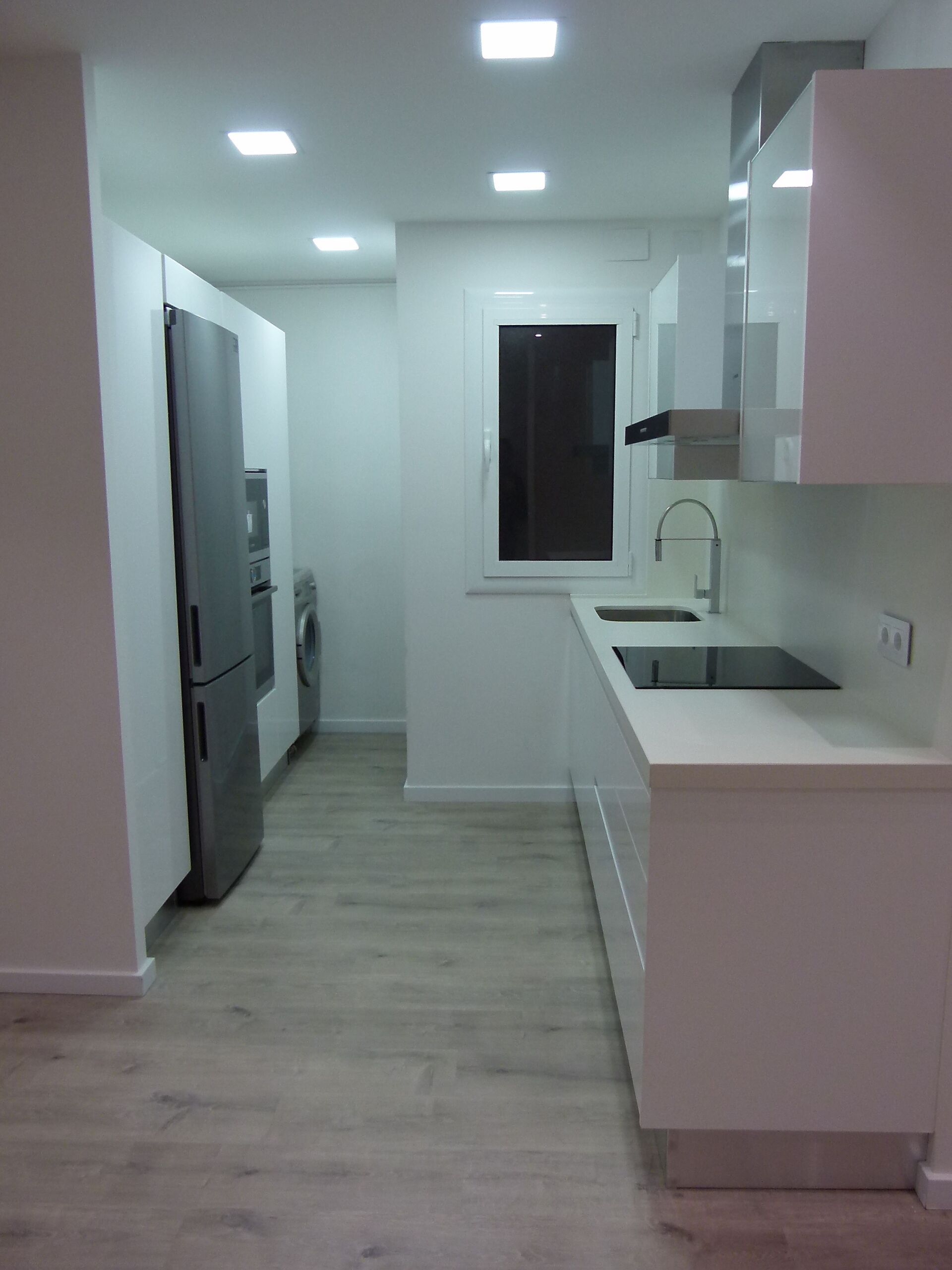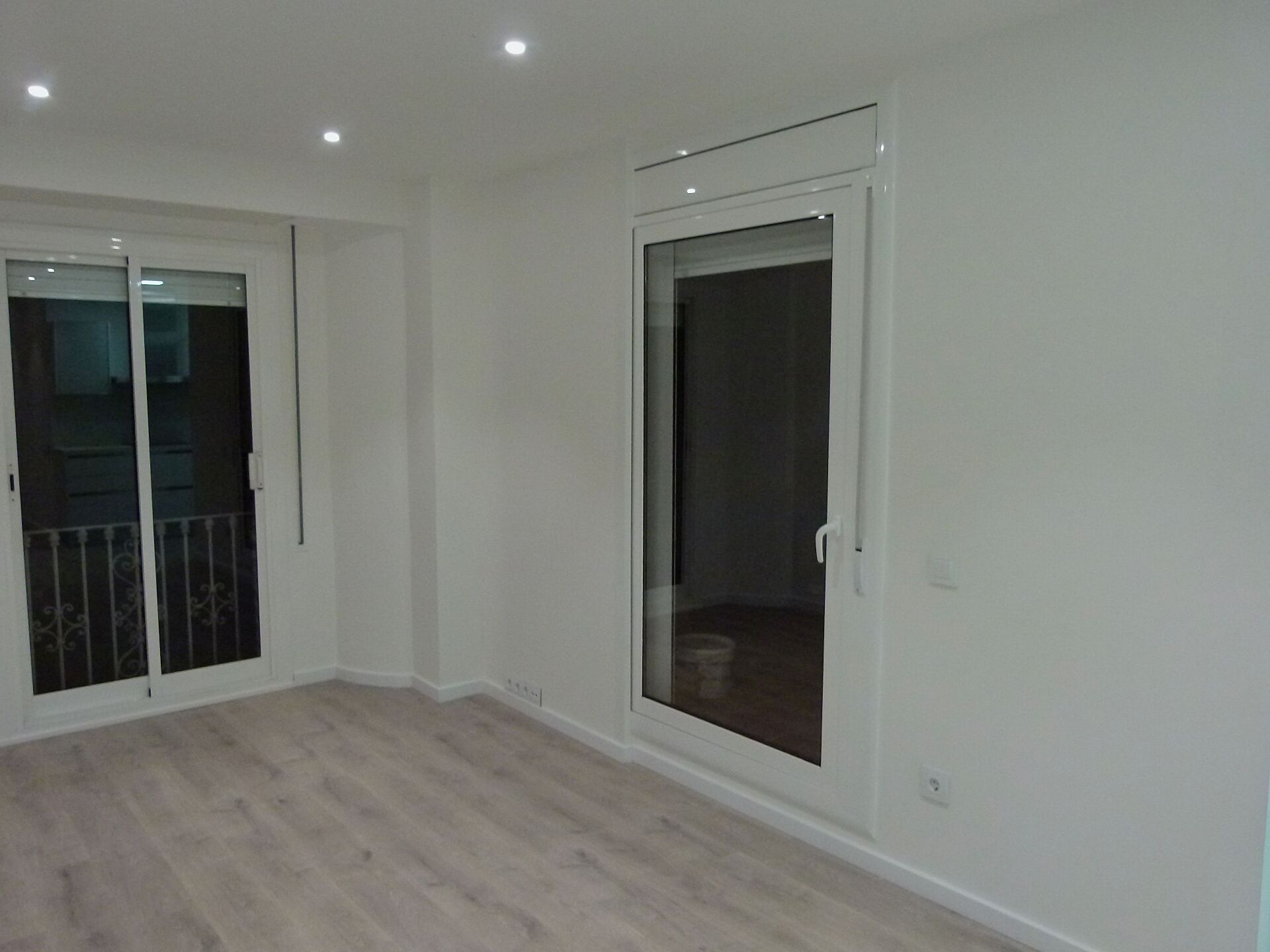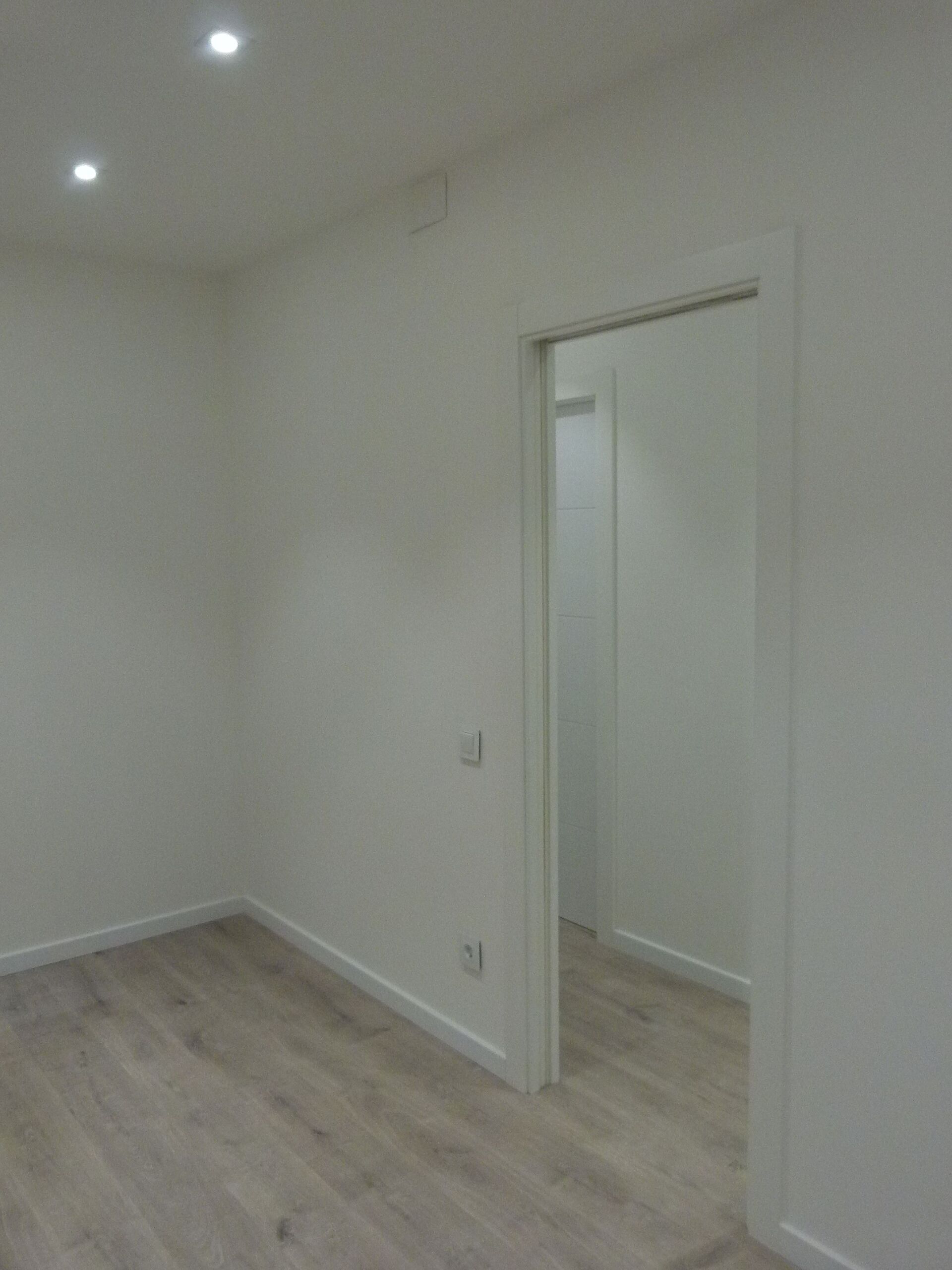 A excepción de una ventana del salón y otra en la habitación, el resto de carpintería de aluminio es totalmente nueva, de doble cámara con aislamiento acústico. La carpintería de madera también ha sido renovada por completo proporcionándole al cliente puertas macizas correderas con mecanismo Krona en color blanco que combinan perfectamente con las tonalidades de la vivienda.