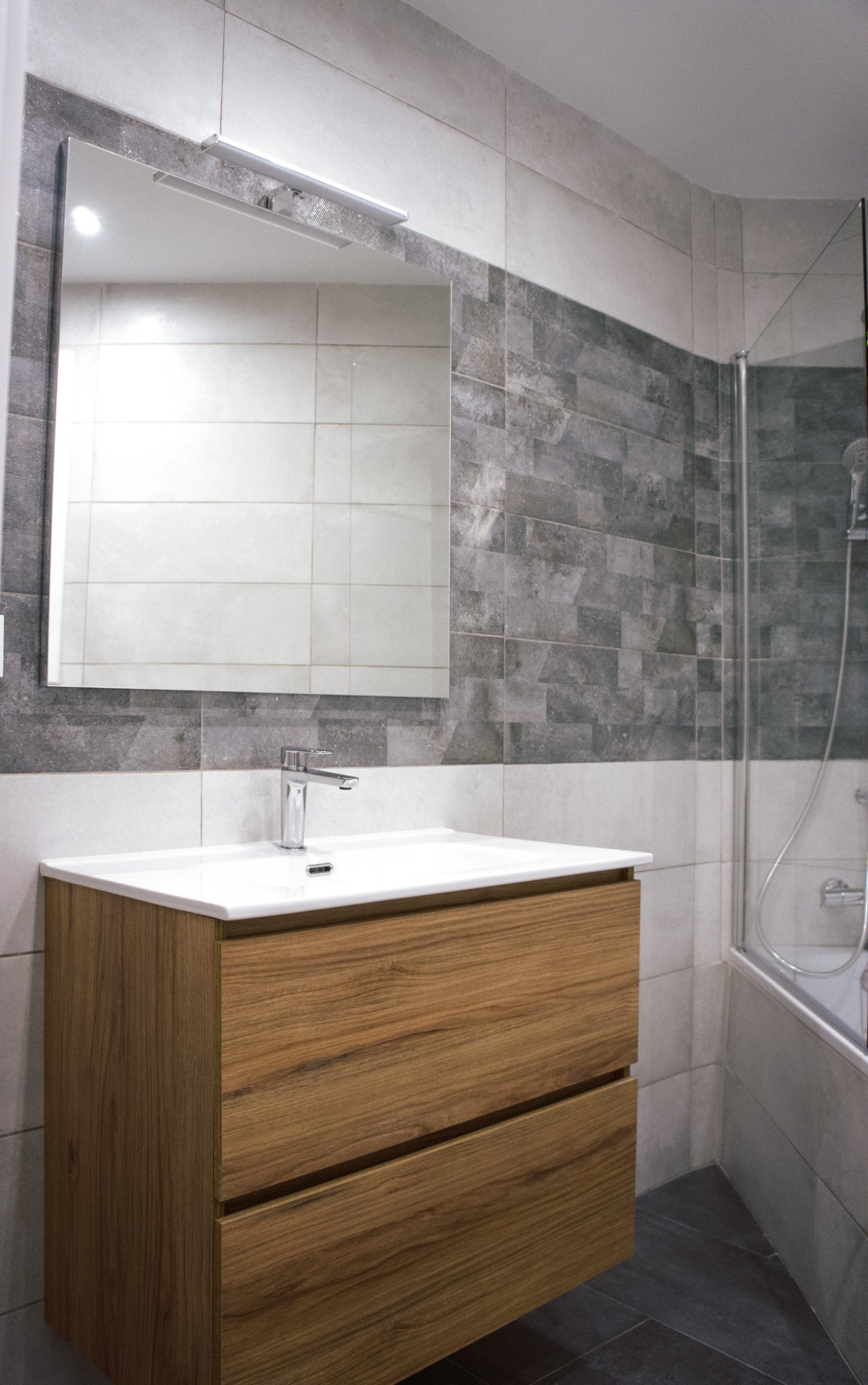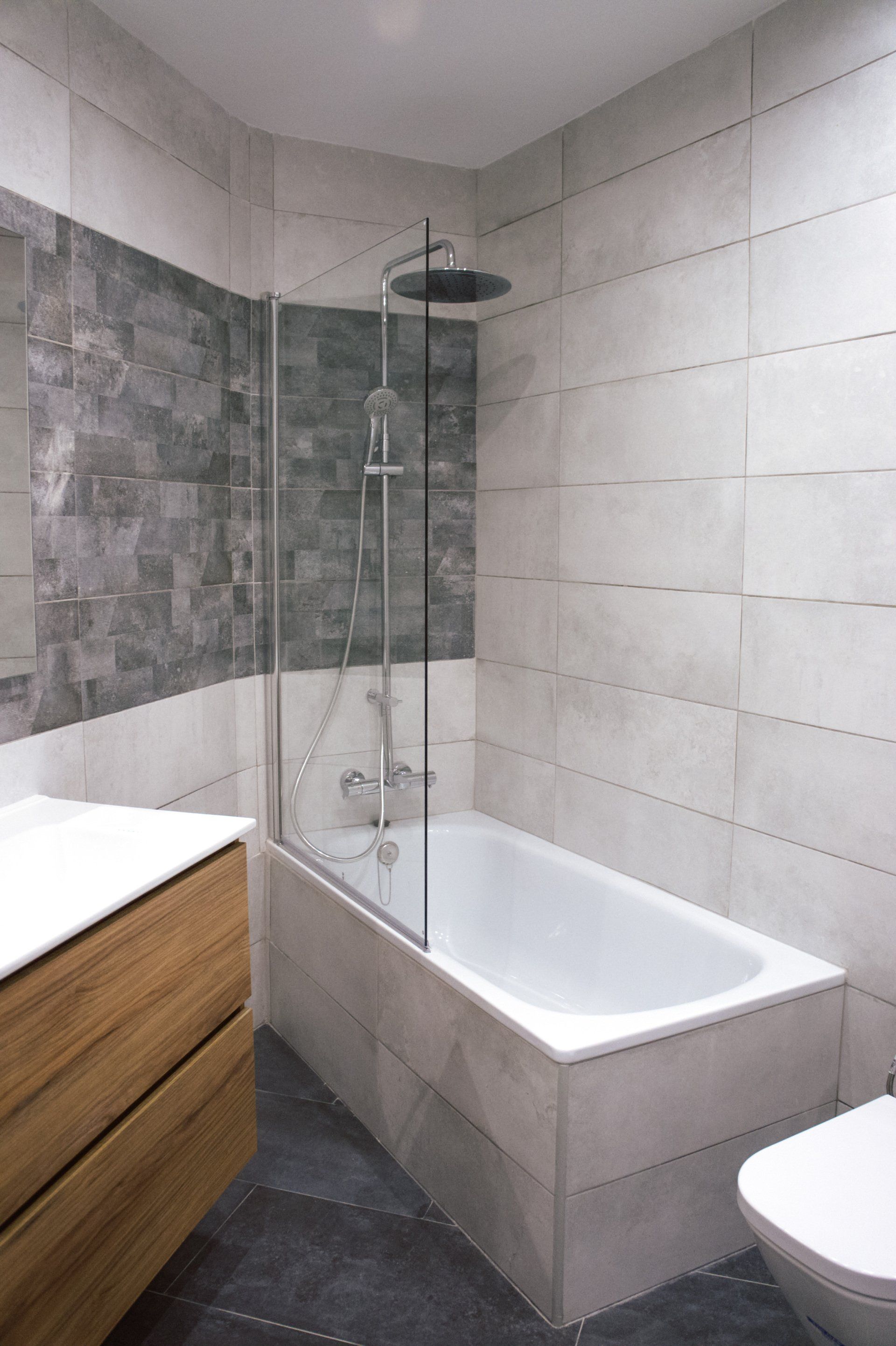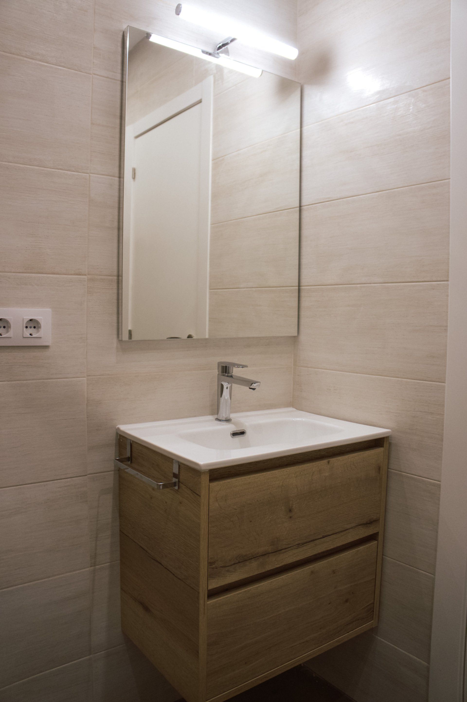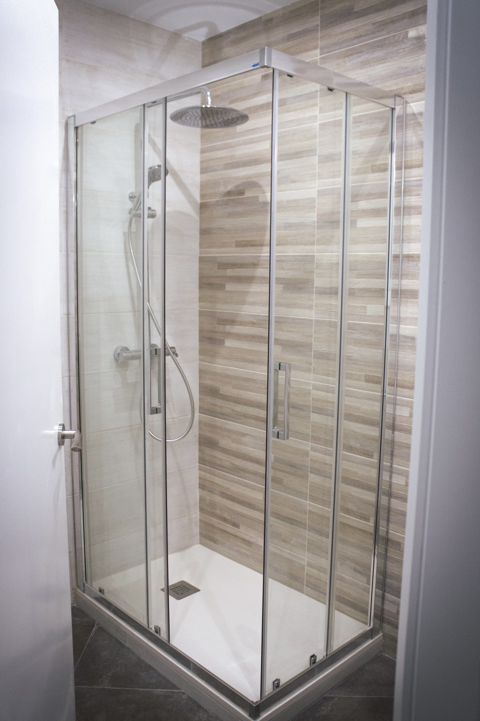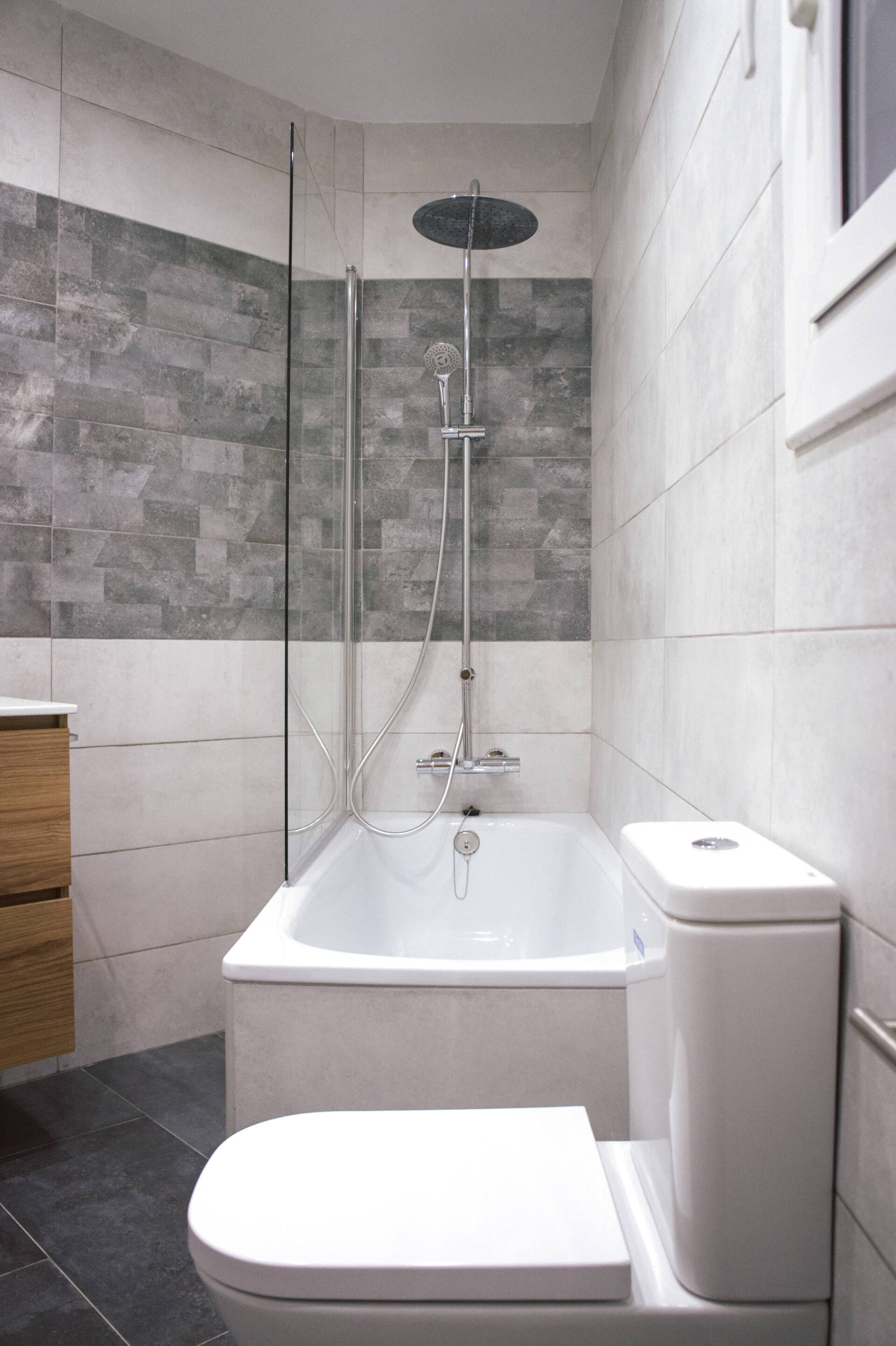 Ambos baños han sido rediseñados y la ejecución del proyecto de reforma integral de los baños ha sido llevada al detalle, puesto que las propias paredes y sus correspondientes ángulos de estas estancias hacían de éstas unas zonas complicadas a la hora de optimizar el espacio disponible. Finalmente hemos podido integrar todos los elementos indispensables en un baño adaptado a las medidas y formas geométricas existentes.