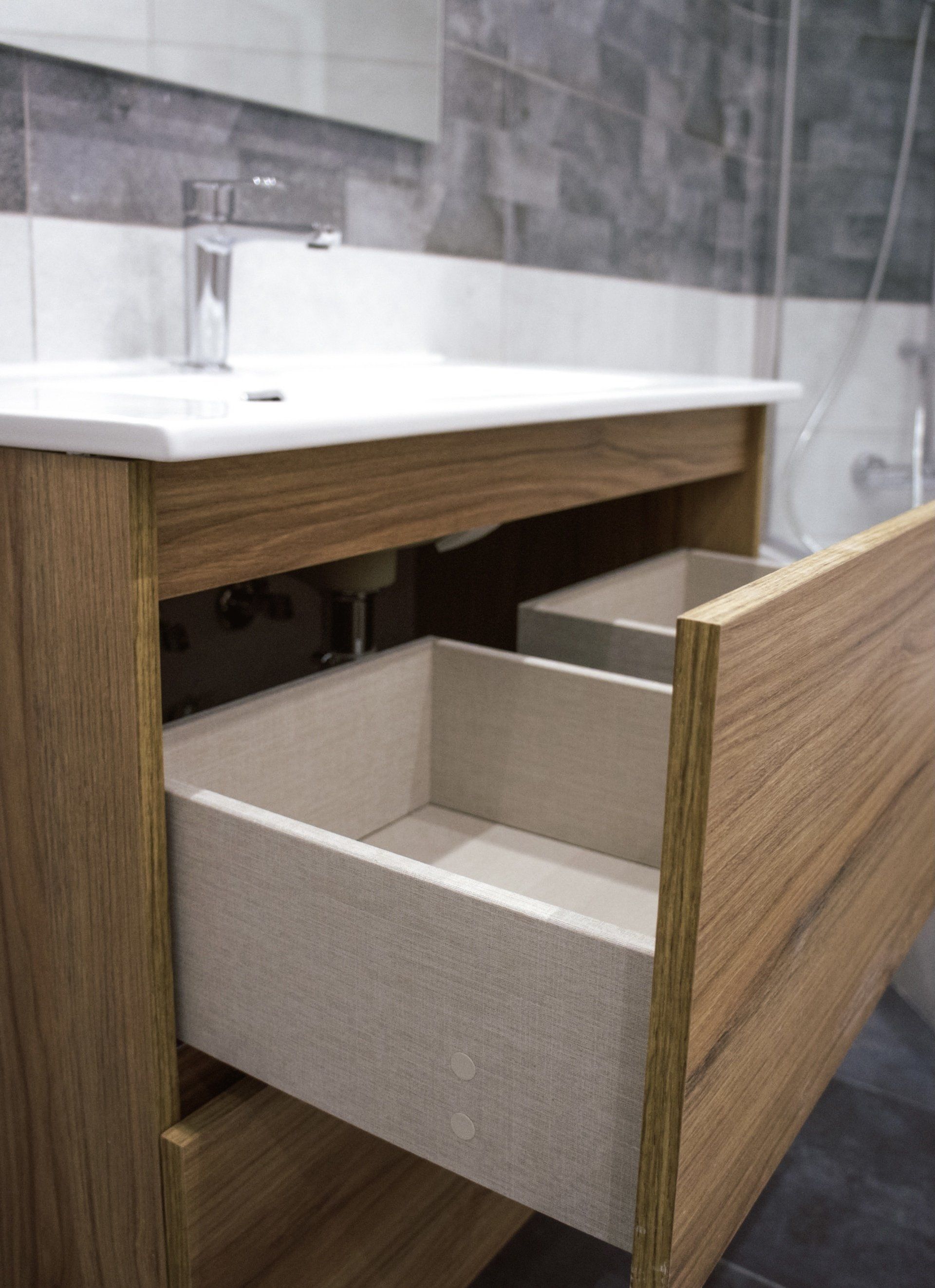 El mobiliario de baño utilizado en ambos baños es de la marca GEMINIS, muebles de alta calidad y confianza, con una gran variedad de diseños y acabados con cajones de guías metálicas HETTICH.