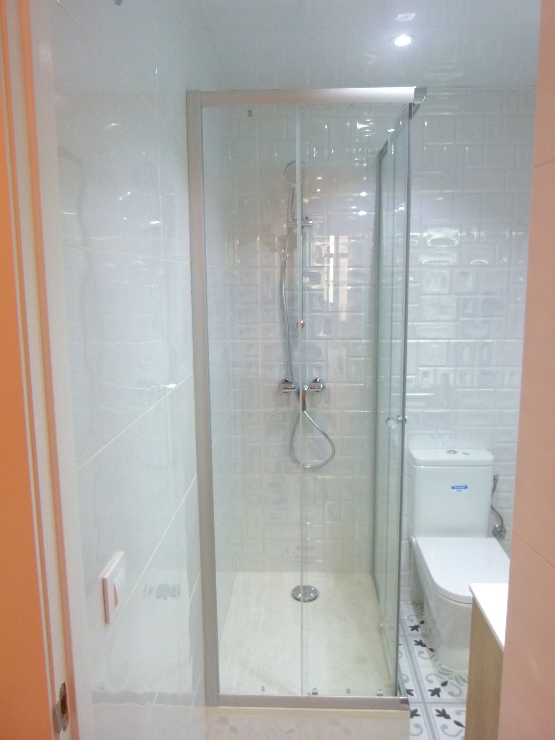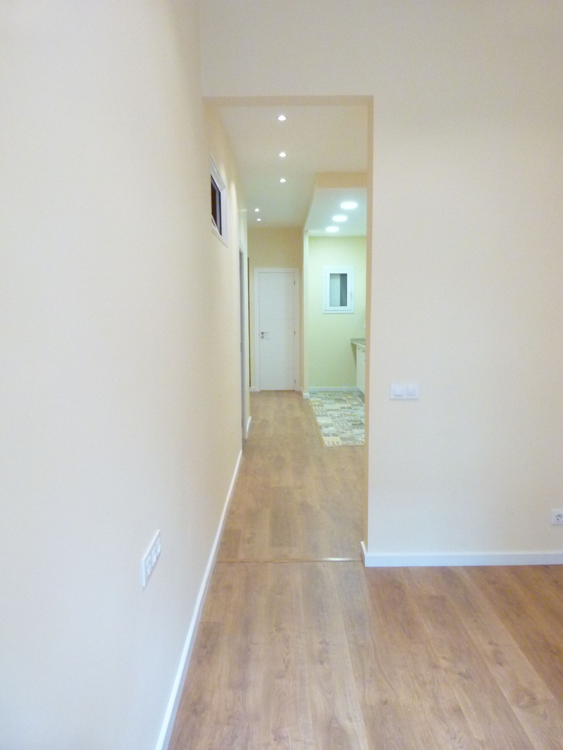 La cocina inicial era un espacio cerrado y oscuro, lo hemos abierto para integrarlo con el comedor y aportarle iluminación, pero hemos marcado su límite variando la altura del techo de pladur, y diferenciando el suelo. El diseño del baño también lo hemos optimizado, cambiando la bañera existente por un plato de ducha de resina mineral junto con los muebles indispensables de todos los baños.